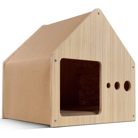 ROODZ 2-in-1 Kratz- & Loungehöhle Scratchlounge – Kuschelhöhle für Katzen aus Echtholz mit hochwertiger Kratzvliesverkleidung