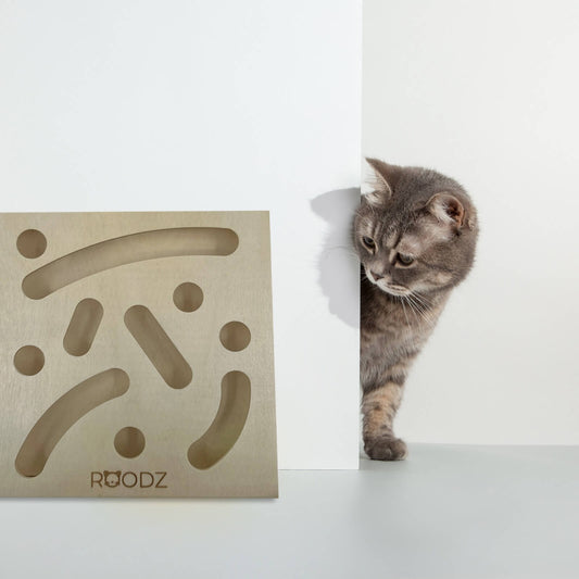 ROODZ "Labyrinth" Interaktives Spielzeug für Katzen – Spaßiger Zeitvertreib mit Ball & Spielöffnungen, aus langlebigem Holz