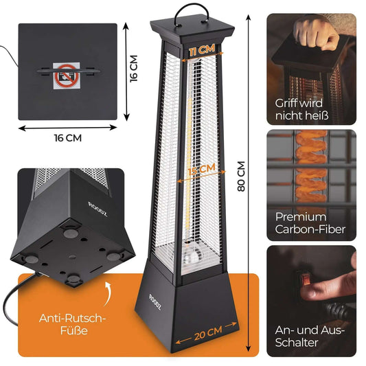 ROODZ Heizstrahler Terrasse, Infrarot Heizstrahler, 2000 Watt, 360° Wärmeabgabe, Regensicher, Designer Wärmestrahler, Terrassenheizstrahler